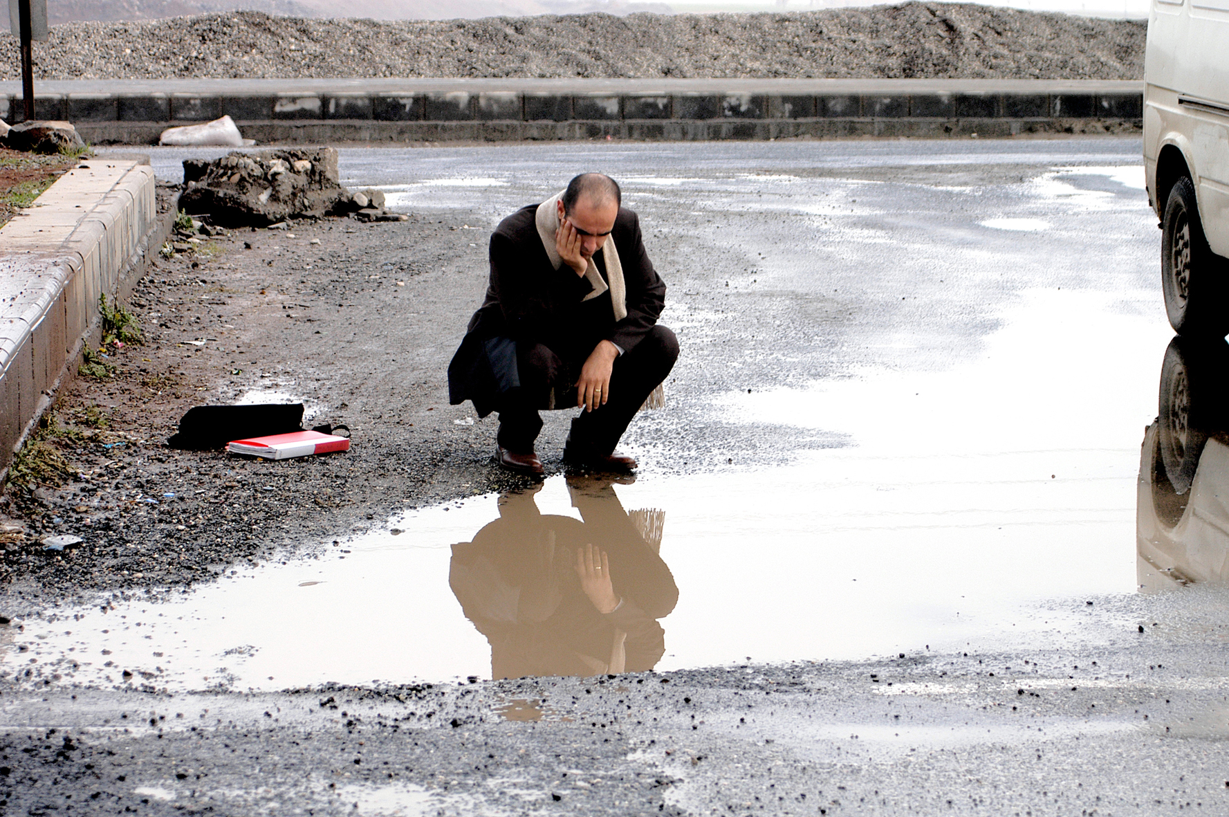 The participants represent three different groups, each highlighting different aspects of the emerging generation. Halil Altindere and Ali Kazma are among the group that lives and works in Istanbul. A second group consists of artists living abroad (Köken Ergun, Nasan Tur, Ahmet Ögüt, Servet Kocyigit). The third group lives in the city of Diyarbakir (Fikret Atay, Sener Özmen, Erkan Özgen, Cengiz Tekin). Most of the participating artists are chie-y of Kurdish descent. It is important to emphasize that the works on exhibit make pointedly direct and ironic reference to political subjects and pose a legitimate question about “cultural identity”. The artists in Not easy, to save the world in 90 days explore the complexities of their socialization, a blend of western European and Asian worldviews and life experiences. They approach the country with a degree of detachment and investigate the meaning of rootedness and being uprooted, of familiarity and foreignness.