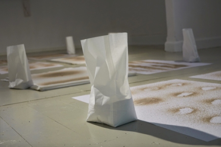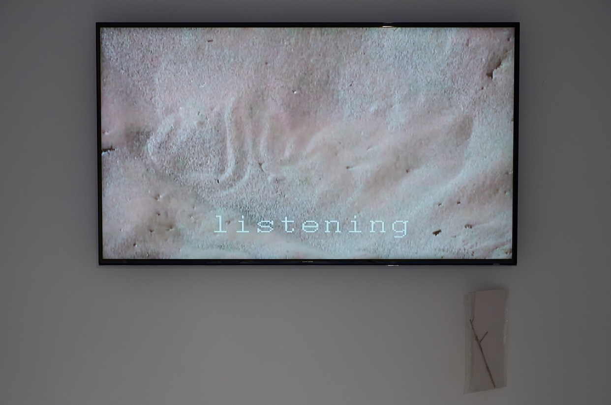 The volume of seven billion grains of sand, and everything in this exhibition that seems to evoke the qualities or the parameters of sand – drawing, time, trickling (shifting), wind, sound and the idea of sound – become part of a dense web of relationships and a meditation on fleetingness and the uncountable, presence and impossibility.