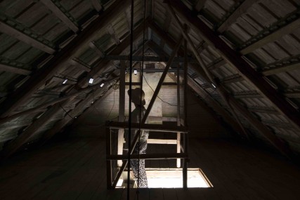 Hovedværket i installationen med titlen “Worthy words for walky talks” er et lyd- og videoværk, der med musikalitet lokker beskueren op på loftet. Under tagets bjælker er otte smartphones installeret; en fugleflok, der kommunikerer igennem sang, billeddeling og beskeder.