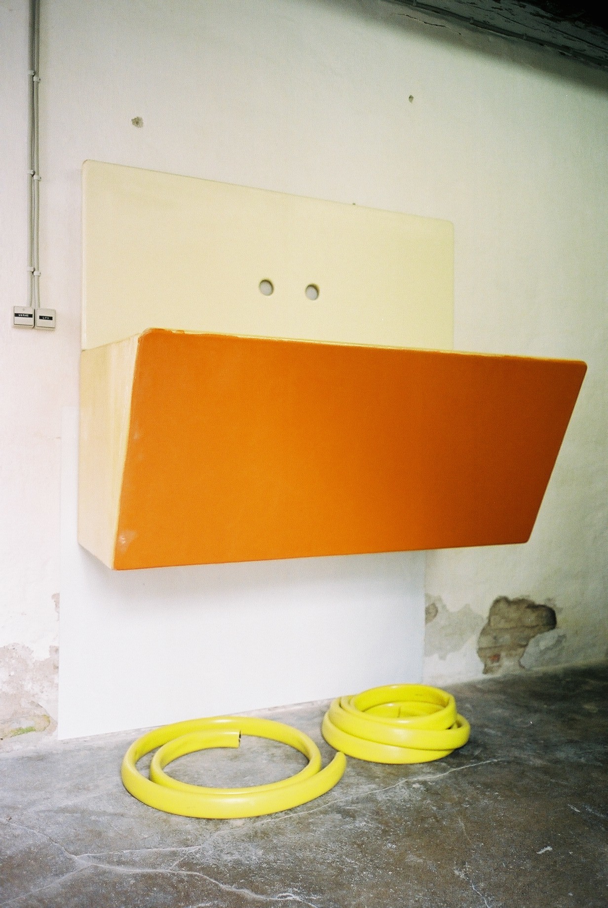 Udstillingen Den Rødgule sommer vidner om kunstnerens gryende fokus på overfladen som betingelse og markerer samtidig et opbrud med den tidligere interesse for skjulte infrastrukturer og systemer. Hergums installation består af en række skulpturer med dekorative mønstre, som refererer til udstillingsrummets unikke ikonografi. Udstillingen bevarer en ubekymret aura, når den agerer mødested mellem skulpturelle genstande og stedets arkitektur og dets fordums funktion som smedje.