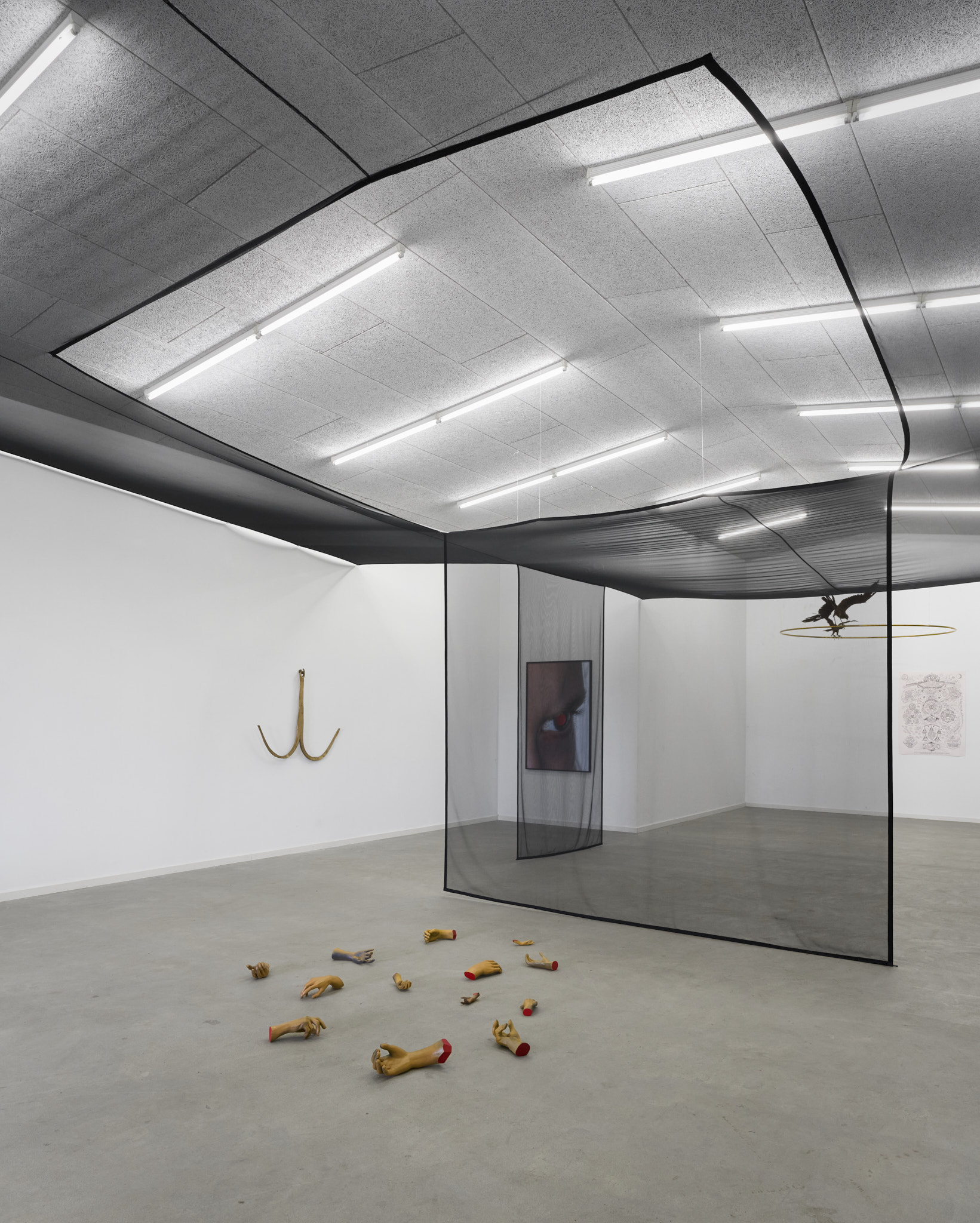 “God Human Animal Machine” er en gruppeudstilling, der undersøger forbindelserne mellem det materielle, det digitale og det spirituelle – og bevæger sig gennem de “tynde steder”, hvor grænserne mellem dem forskydes. Udstillingen foreslår en læsning af samtiden i korrespondance med middelalderen – en tid hvor guddommelig autoritet strukturerede viden – og overvejer, hvordan nutidens digitale infrastrukturer udøver en tilsvarende uforklarlig indflydelse på virkeligheden, idet de former, klassificerer og konstruerer verden gennem mekanismer, der forbliver stort set uigennemskuelige for menneskelig forståelse.