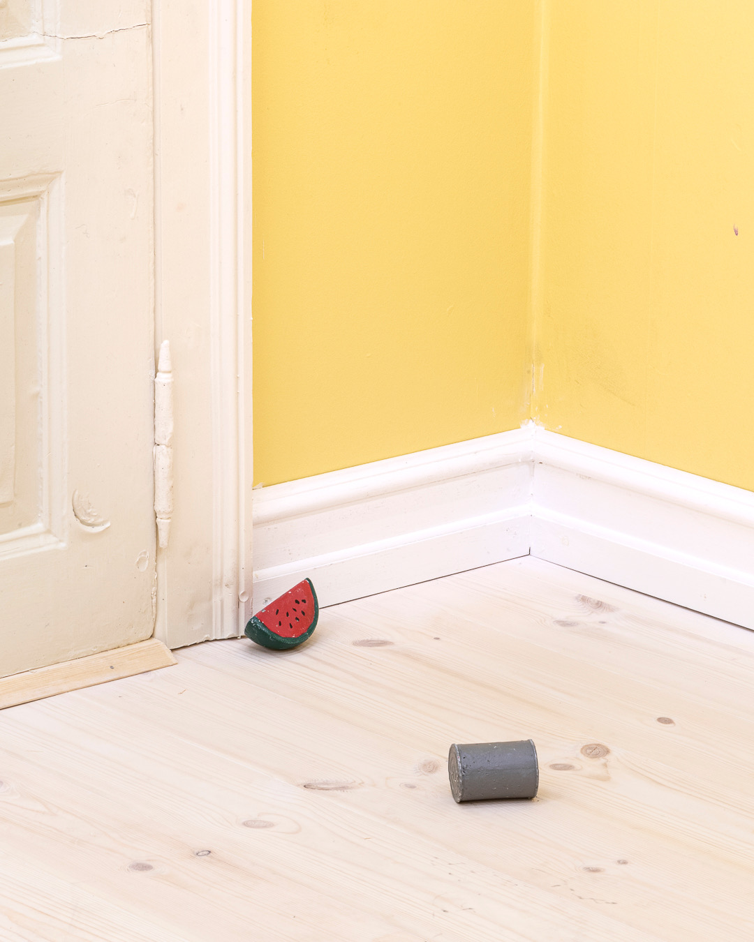Ved nærmere eftersyn opdager man, at de fleste elementer i rummet ikke er lavet af deres forventelige materialer: legetøjet på gulvet, som vi kender som hule plastik-skaller, er her støbt i massiv bronze, og hårde fyldningsdøre er udskiftet med blødt ikke-hærdende modellervoks. Disse ændringer bryder med forventningerne til genstandenes materialitet og funktion, samt vækker følelser af usikkerhed og indre uro. Hvordan efterlader følelser som disse aftryk i og omkring os?