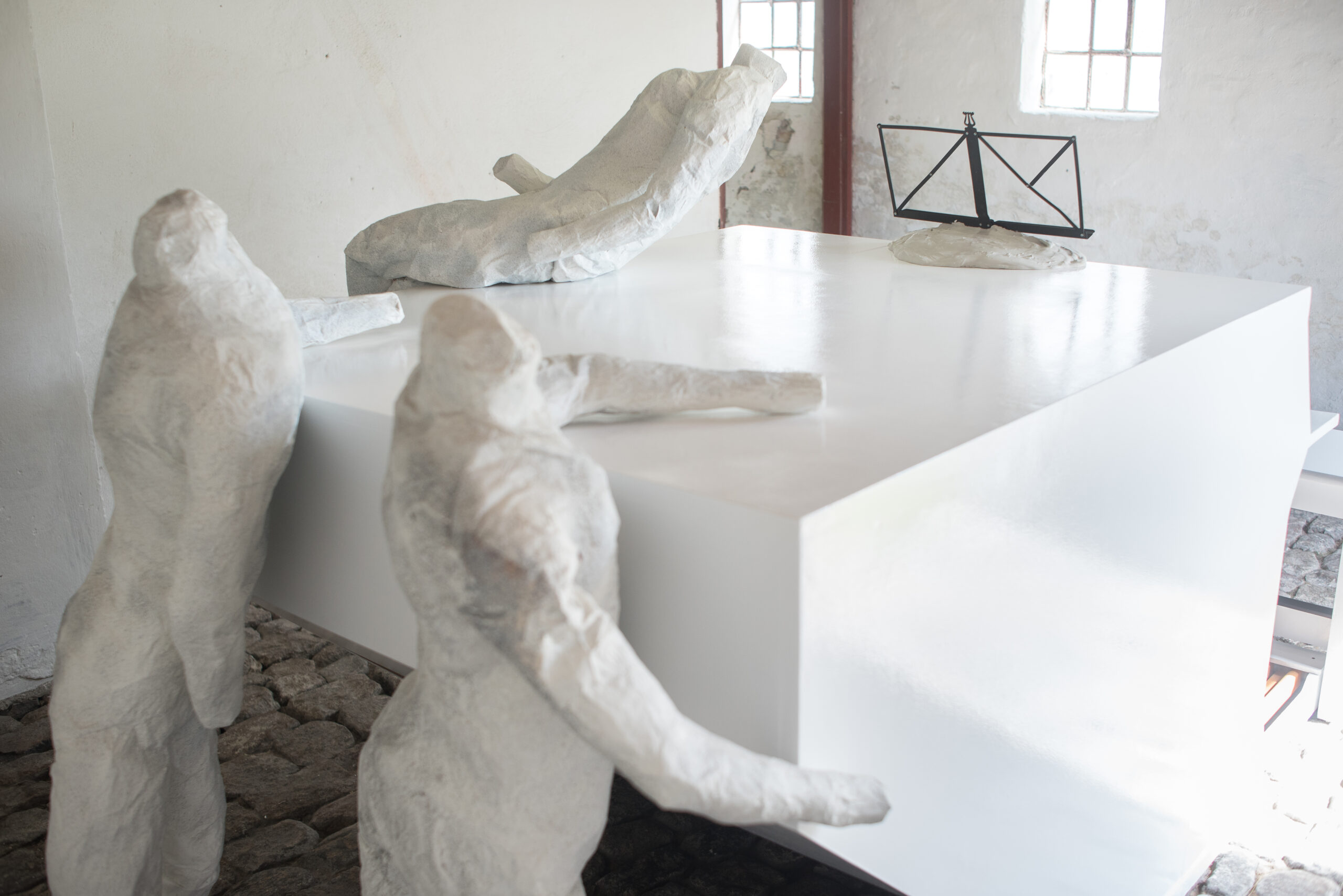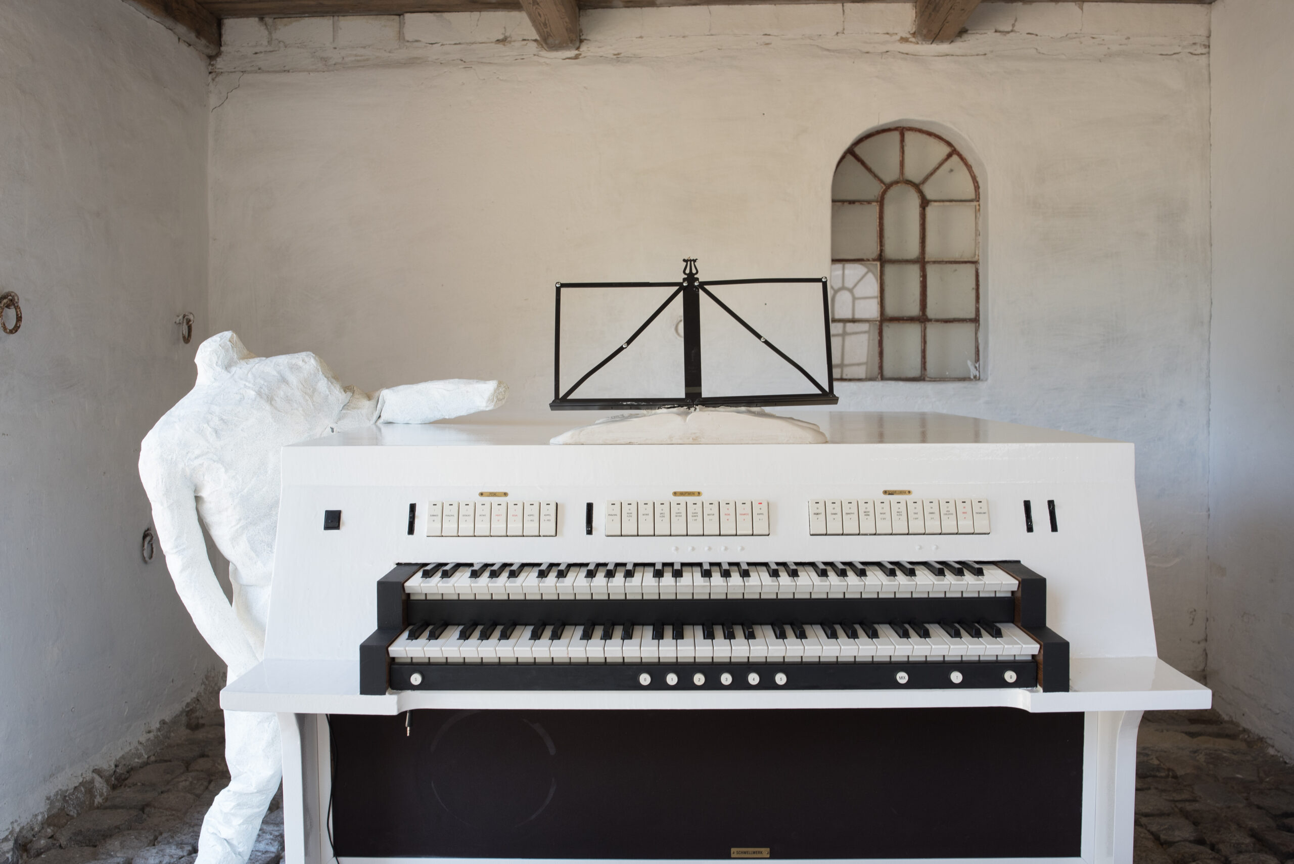 Orglets skulpturelle, næsten geometriske form, dominerer pladsen i den gamle smedje. Orglet genkendes ofte som et instrument, men for kunstneren associeres det i højere grad til en billedflade eller form end til dets lydlige, funktionelle egenskaber. Stæhr har på forhånd inviteret et publikum bestående af forventningsfulde papmachéfigurer. Som hun fortæller: “Folk står i kø og venter på, at det forunderlige sker”.