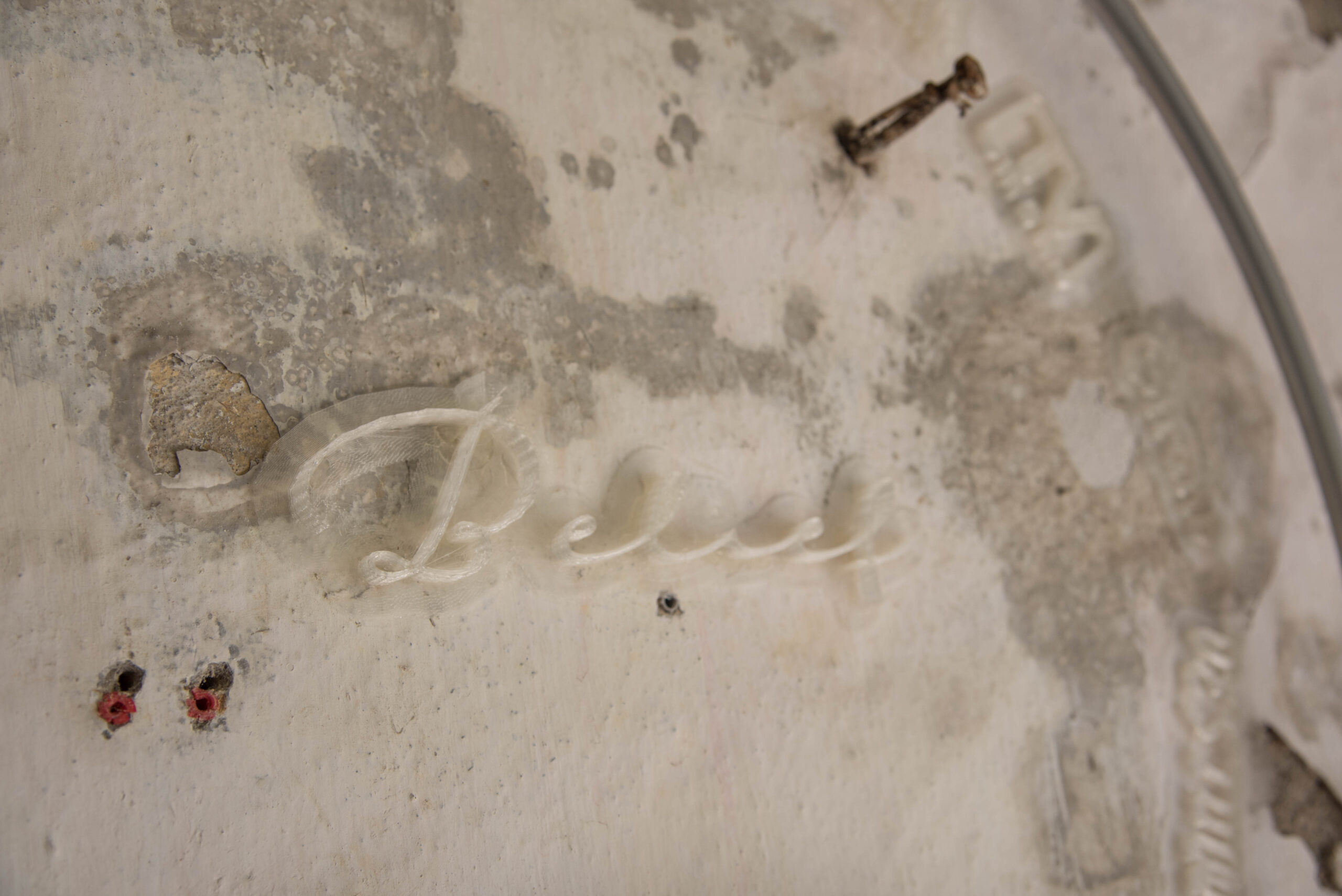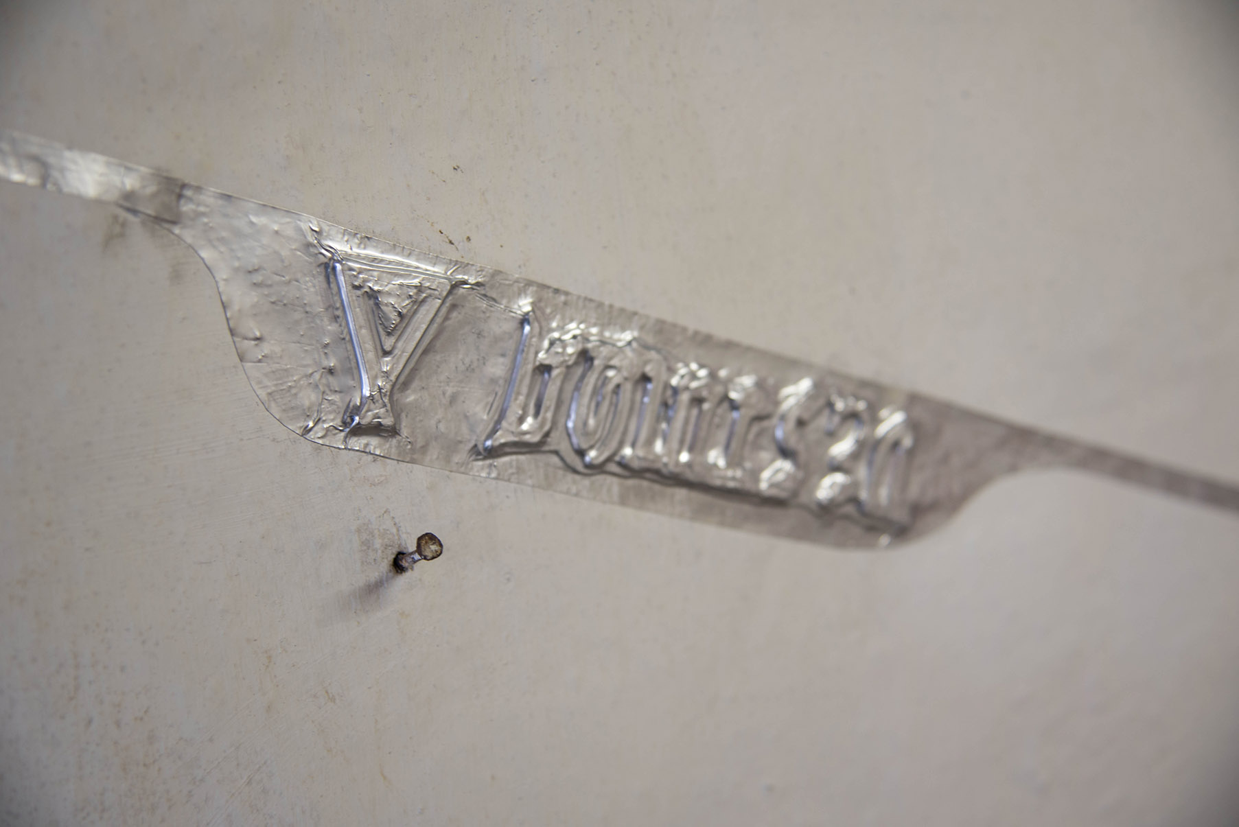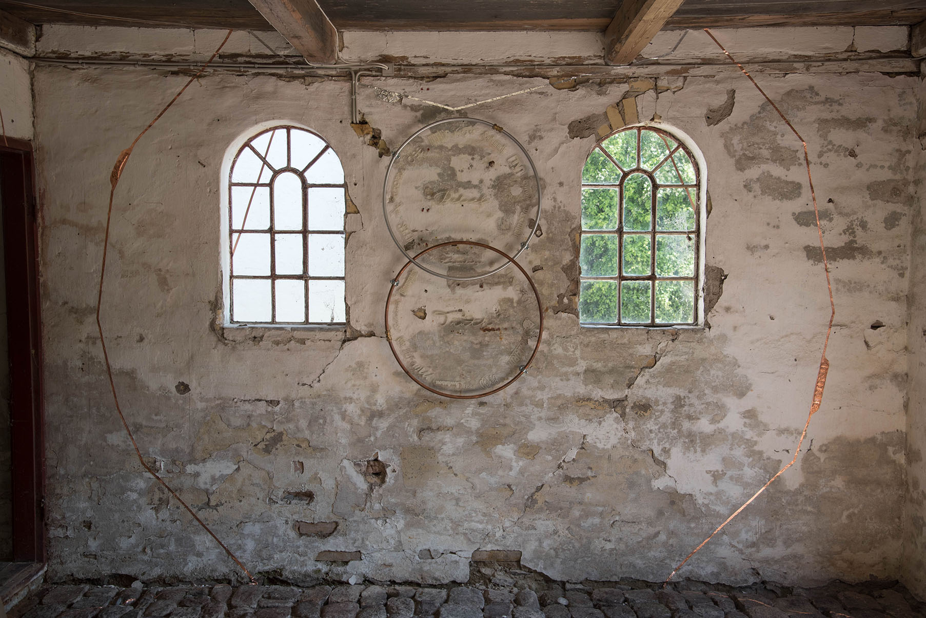 Logoer og tekstlige fragmenter, fundet i den umiddelbare nærhed af smedjen, er 3d printet og indlejret i kobbervandrør og aluminiumsbånd, og danner en idiosynkratisk samling af skrift- og billedsprog fra Møn. Fragmenterne er b.la. fundet på Hårbølle Havn, Fanefjord Kirke, Ugebladet-for-Møn, Camping Vestmøn m.m. De danner igennem installationen en egen fortælling med lyriske udsagn som: “i mit blod”, “hukommelse”, “utopi”, “Belladonna” etc. Smedjen kommer på den måde til at skabe grundlag for en visuel bearbejdelse af hvad der er i verden og omkring os på Møn.