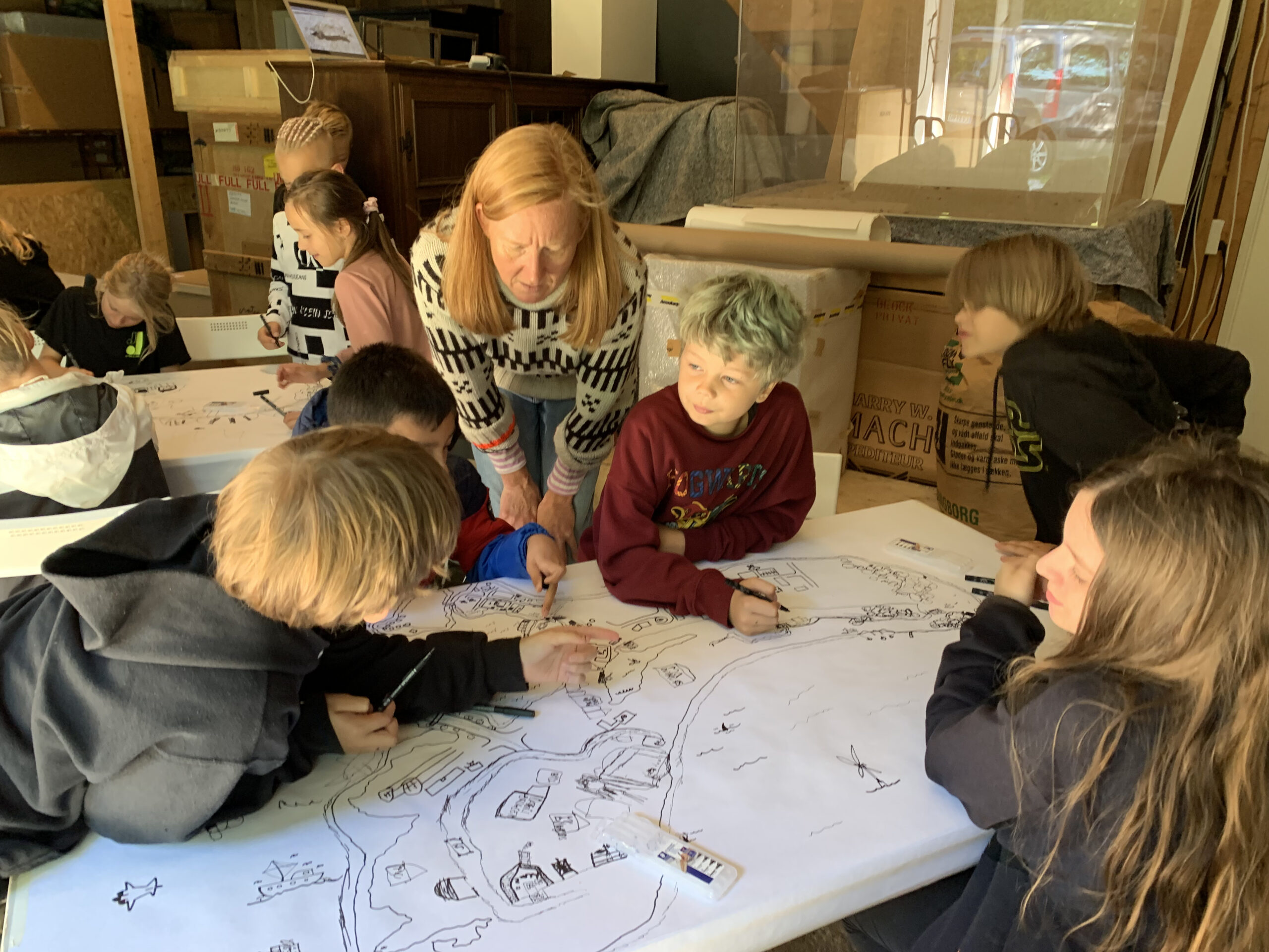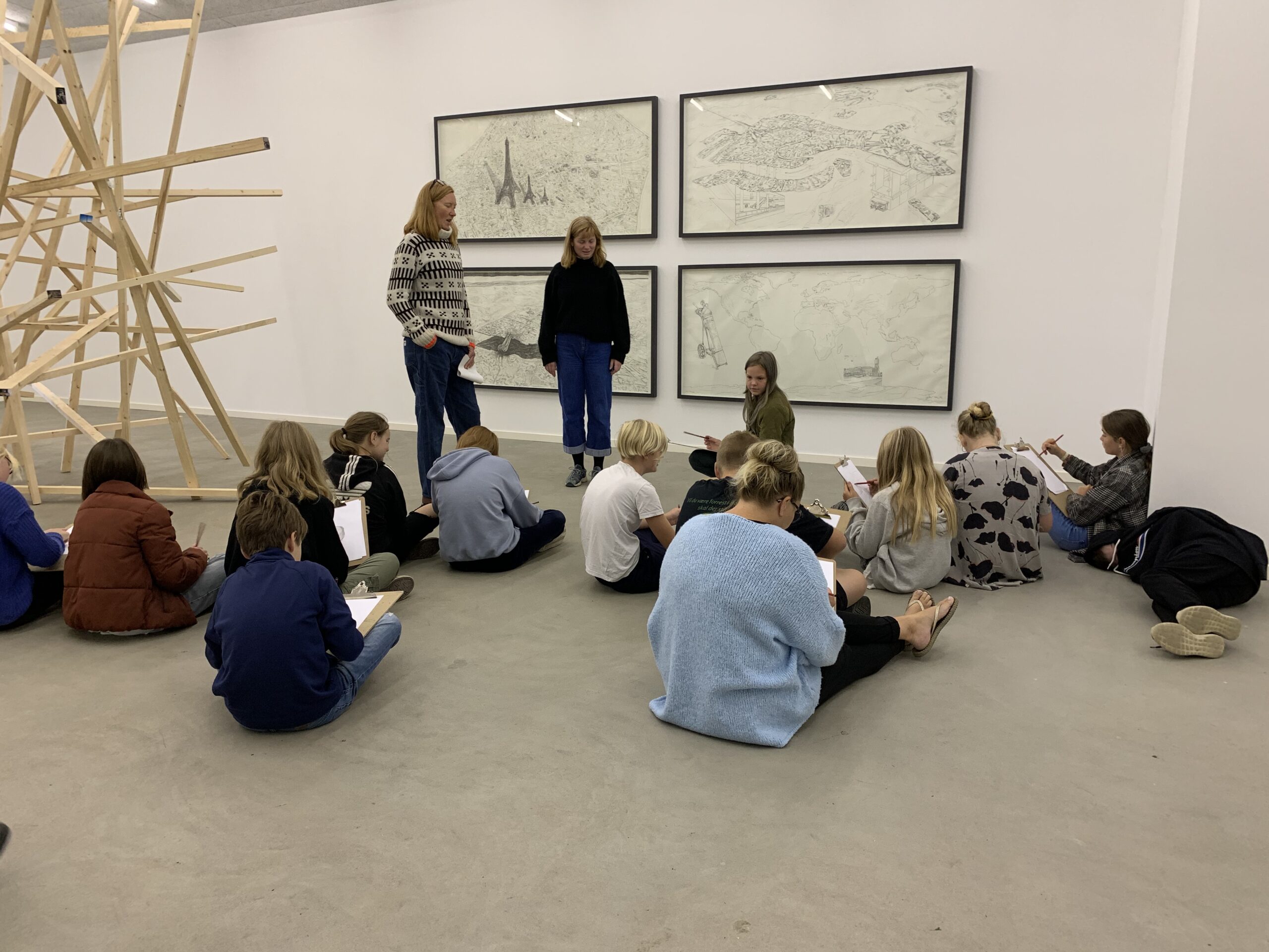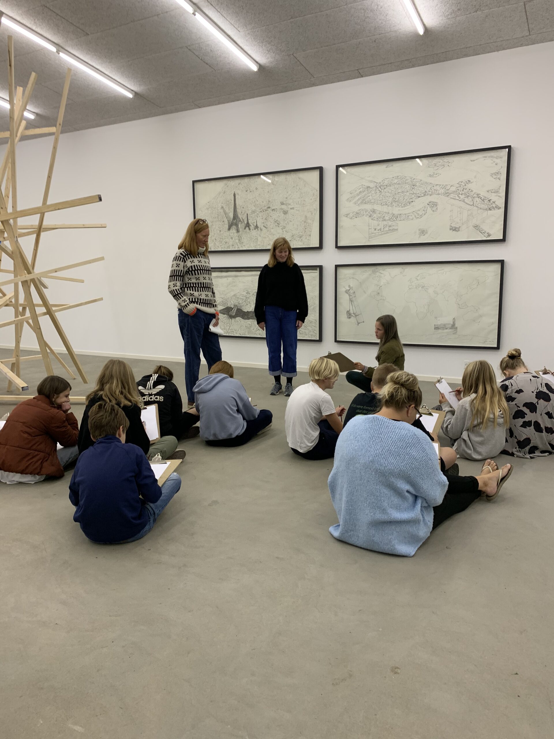 44Møen’s skoletjeneste tilbyder forløb for skoleklasser på alle klassetrin til og med gymnasiet. Forløbene tager udgangspunkt i den eller de aktuelle udstilling/er. Vi taler om værkerne, om de anvendte materialer, hvad værkerne gør ved os, og hvilke tanker de fremkalder i os hver især. På denne baggrund skal børnene løse en kreativ opgave, der understøtter vores dialog. Et forløb tilbydes en klasse på op til 26 elever i følge af to lærere.